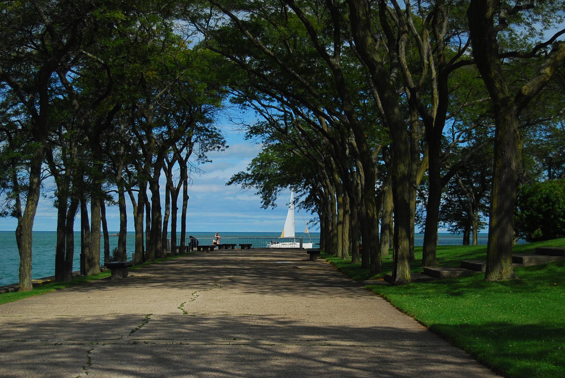 I continued all the way to the Navy Pier, a sharp halt at the end of my ride. I followed the signs for the Lake Shore Trail, which offered unparalleled view of the iconic skyline nestled on the western shores of Lake Michigan. The water was a pale, cerulean blue mirroring the sky above me, gentle waves lapping onto the path leveled at the lake’s edge. The water was high and exposed to the paved pathway, if you got close enough the water would lap right over the edge and onto your feet.