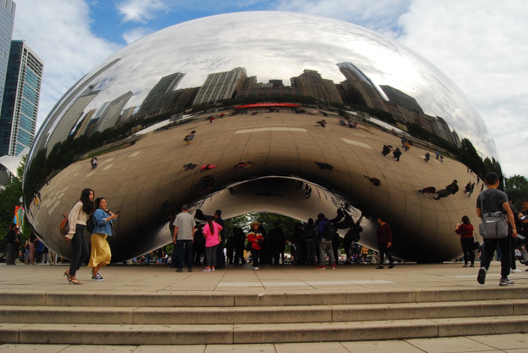 Although Kapoor’s submission did win over Koons’, there were vast concerns about its building materials. It could become fatally subject to Chicago’s weather swings, visitor fingerprints, and graffiti. Even finding a material that could be applied to the sculpture seamlessly to create the mirror effect was questioned. The shell was eventually comprised of 168 stainless steel panels. Each panel was ⅜ inch thick and weighed between 1,000 and 2,000 lbs. It was refined using a double-action sander and polished with a ten-inch electric buffing wheel. Ultimately, the sculpture was almost two times the anticipated weight, nearly two times the anticipated cost, and officially completed and dedicated almost two years past due.